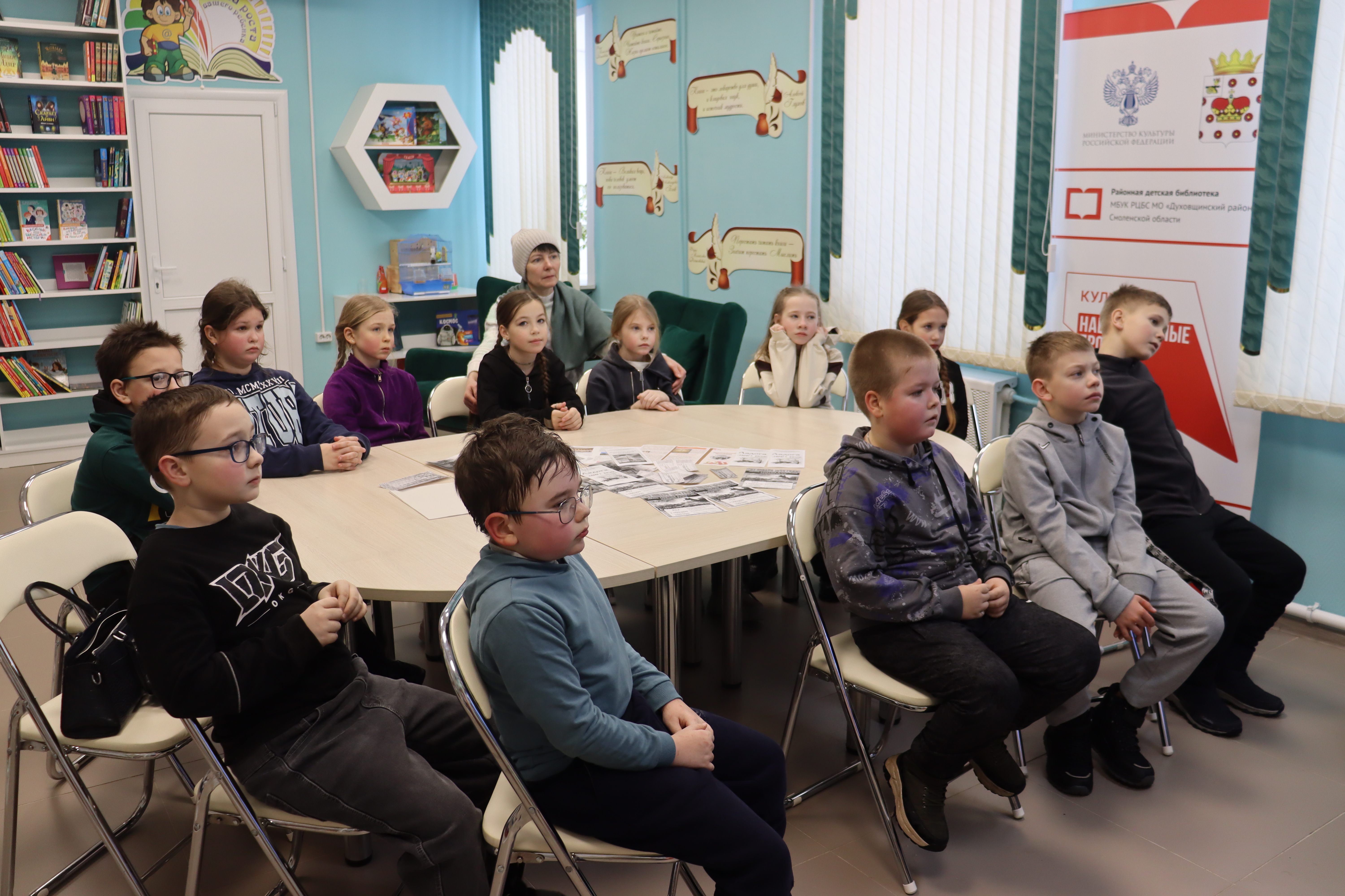 К дню 82 годовщины со дня снятия Ленинградской блокады в Районной детской библиотеке прошла историко-патриотическая акция «Блокадной вечности границы». На мероприятии присутствовали учащиеся 3 а класса Духовщинской средней школы вместе с классным руководителем –Конашенковой Ольгой Викторовной. В ходе мероприятия библиотекари показали ребятам, как выглядел кусочек блокадного хлеба, талон, по которому жителям блокадного Ленинграда выдавали паёк, раздавали листовки с описанием состава хлеба, который выпекли в блокадном Ленинграде. Каждый участник акции получил памятку «Непокоренный Ленинград». Также ребята ответили на вопросы викторины о тяжелых днях блокады.