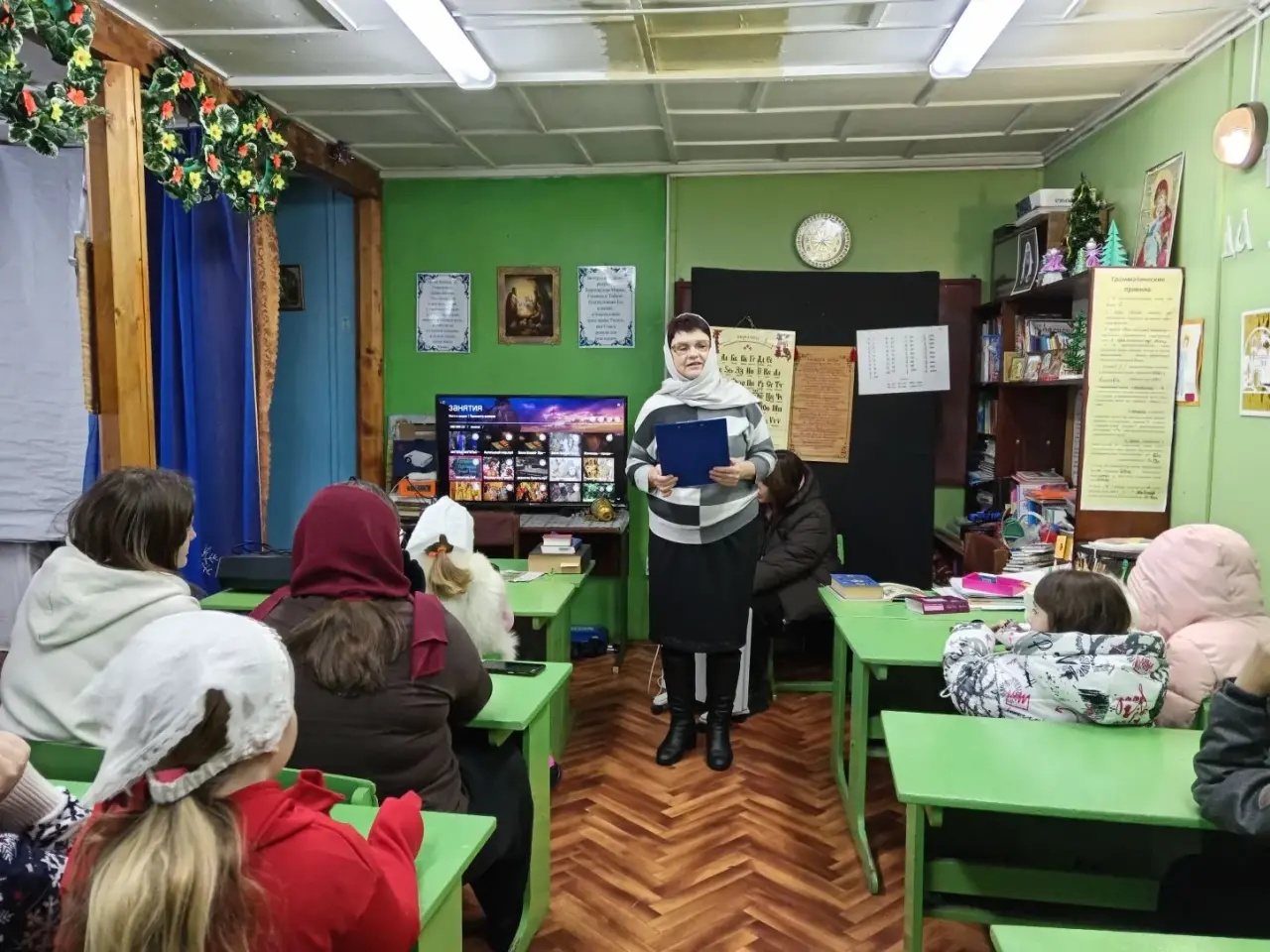 18 января в воскресной школе при храме Рождества Пресвятой Богородицы в п. Озерный состоялась православная беседа «Светлый праздник Крещения». Мероприятие было проведено педагогами воскресной школы Варивода Е.М., Казаковой Е.А. и заведующей Озерненской детской городской библиотекой Фроловой Т.А. в рамках работы Кафедры православной литературы для детей. После Божественной литургии ребята собрались в небольшом, но уютном помещении воскресной школы. Занятие началось с утренней молитвы. Затем ребята послушали рассказ о празднике Крещения, какому событию он посвящен, посмотрели видеофильм «Крещение Господне», прослушали сказку Н.Головко «Живая вода». Для закрепления материала каждый из воспитанников ответил на заданный вопрос по теме, а затем все дружно отгадали загадки о празднике. Закончилось мероприятие праздничным чаепитием.