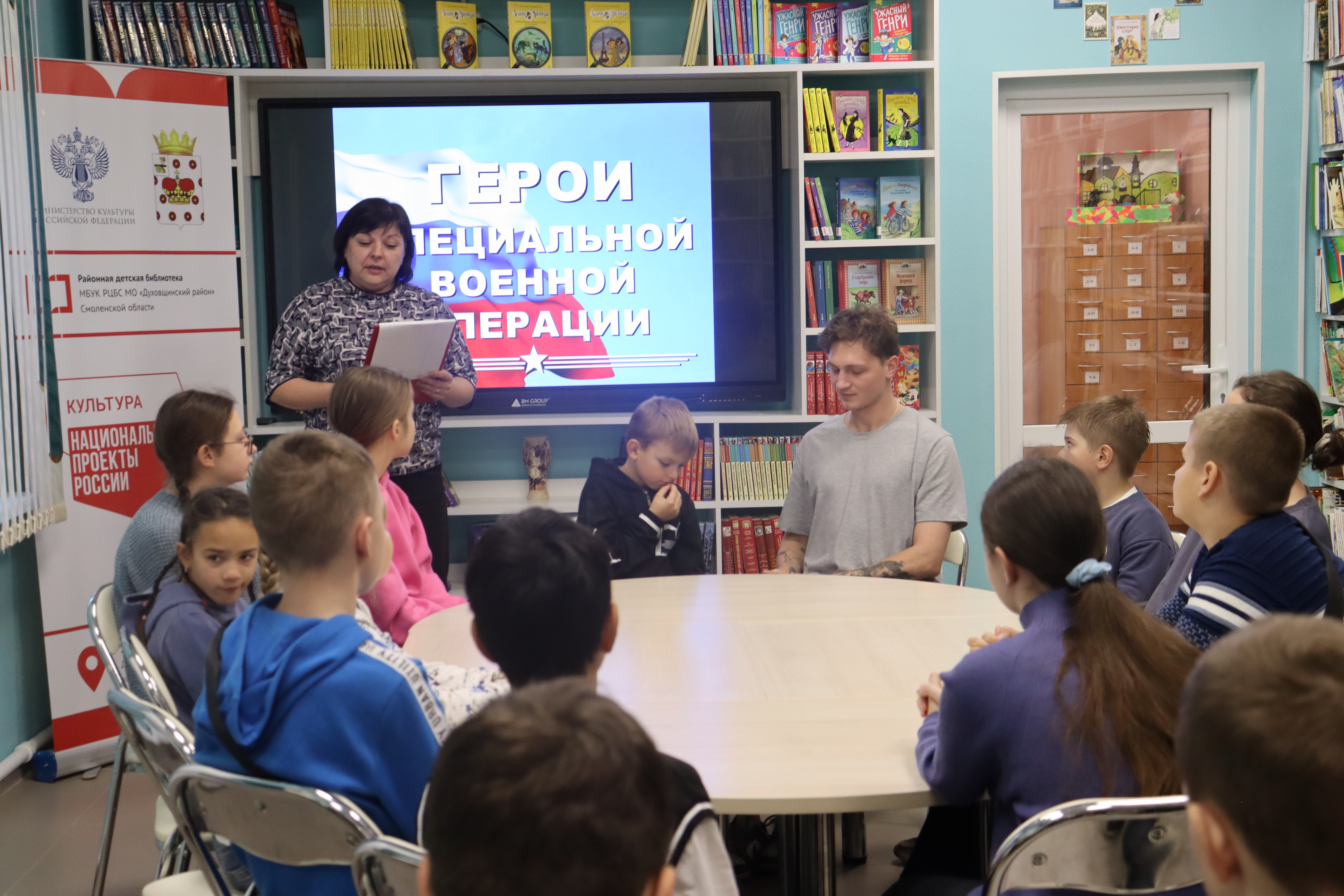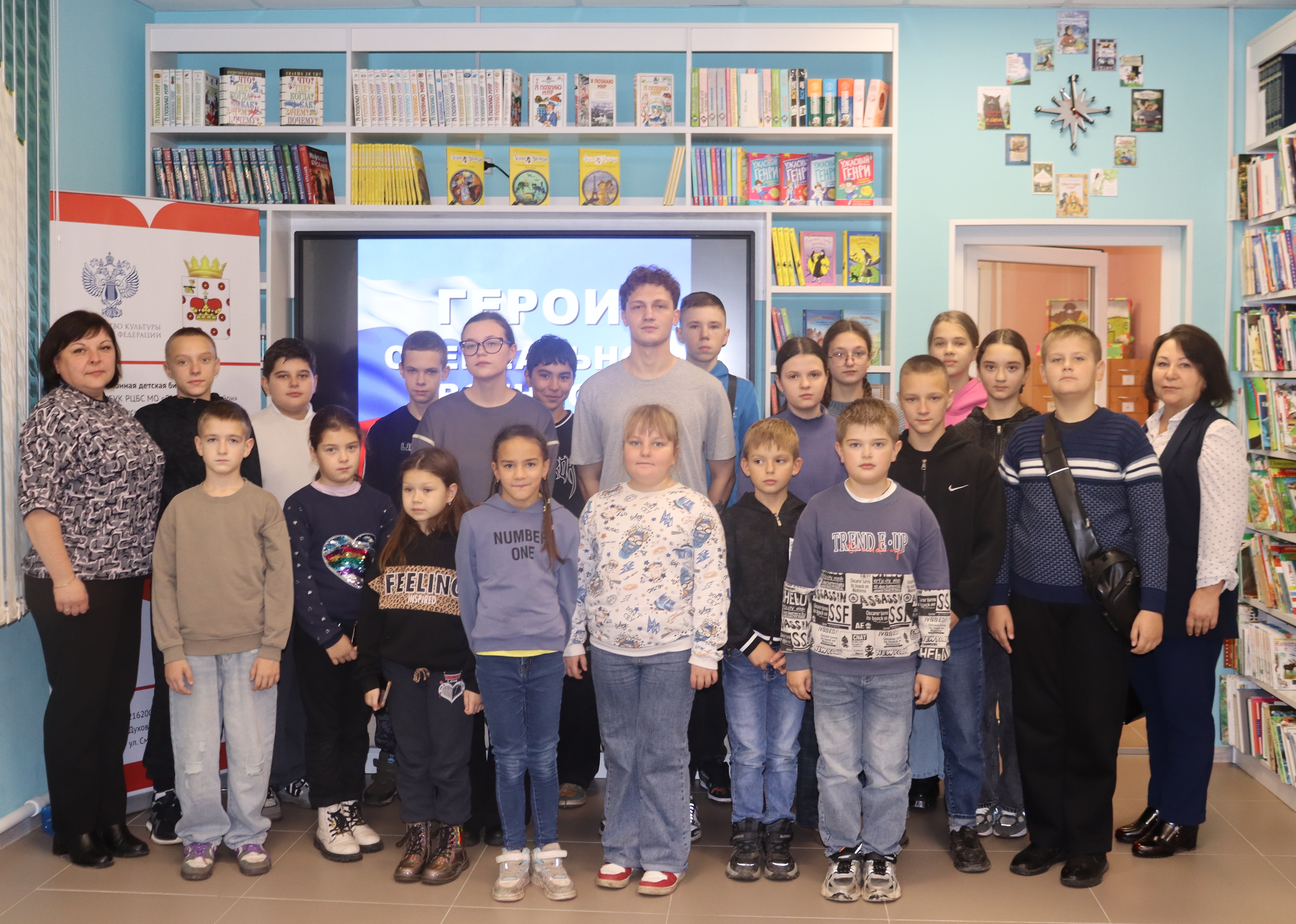 30 октября 2025 года в районной детской библиотеке состоялась встреча с участником Специальной военной операции «Герои СВО». В ходе мероприятия библиотекарь центральной районной библиотеки рассказала ребятам об основных причинах начала СВО. Затем ребята встретились с участником боевых действий - Чаусовым Романом. Когда началась Специальная военная операция на Украине, Роман был мобилизован. С января 2023 года принимал активное участие в боевых действиях, являясь командиром танка Т-90А. Во время выполнения боевой работы на Северо-Кременном направлении его экипаж был атакован. Члены экипажа были тяжело ранены. Роман находился в госпитале пять месяцев. За проявленные героизм, самоотверженность, мужество и отвагу он был награжден орденом Мужества. Роман согласился прийти на встречу, рассказал ребятам о своей службе. Дети внимательно слушали его рассказ, задавали интересующие их вопросы.