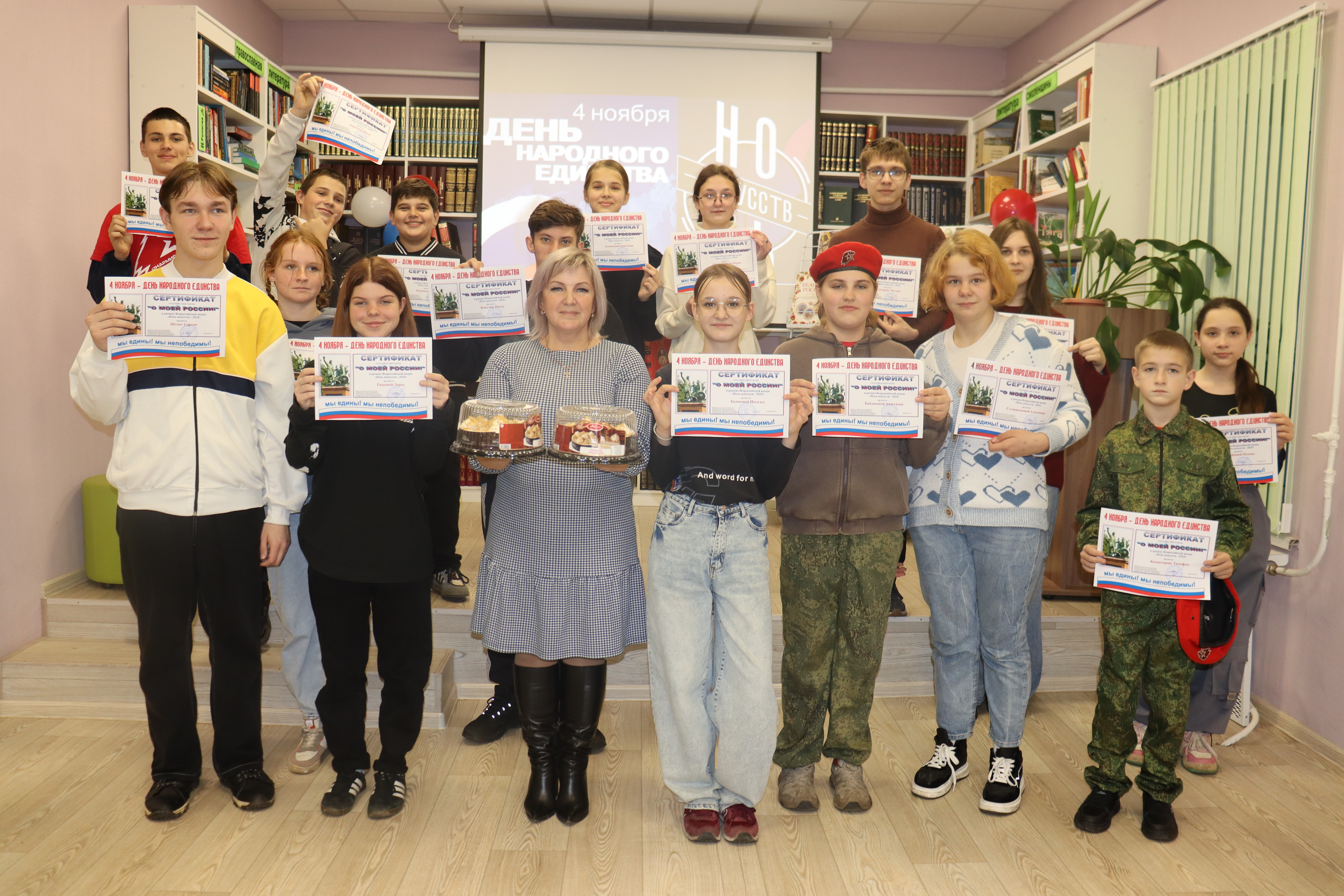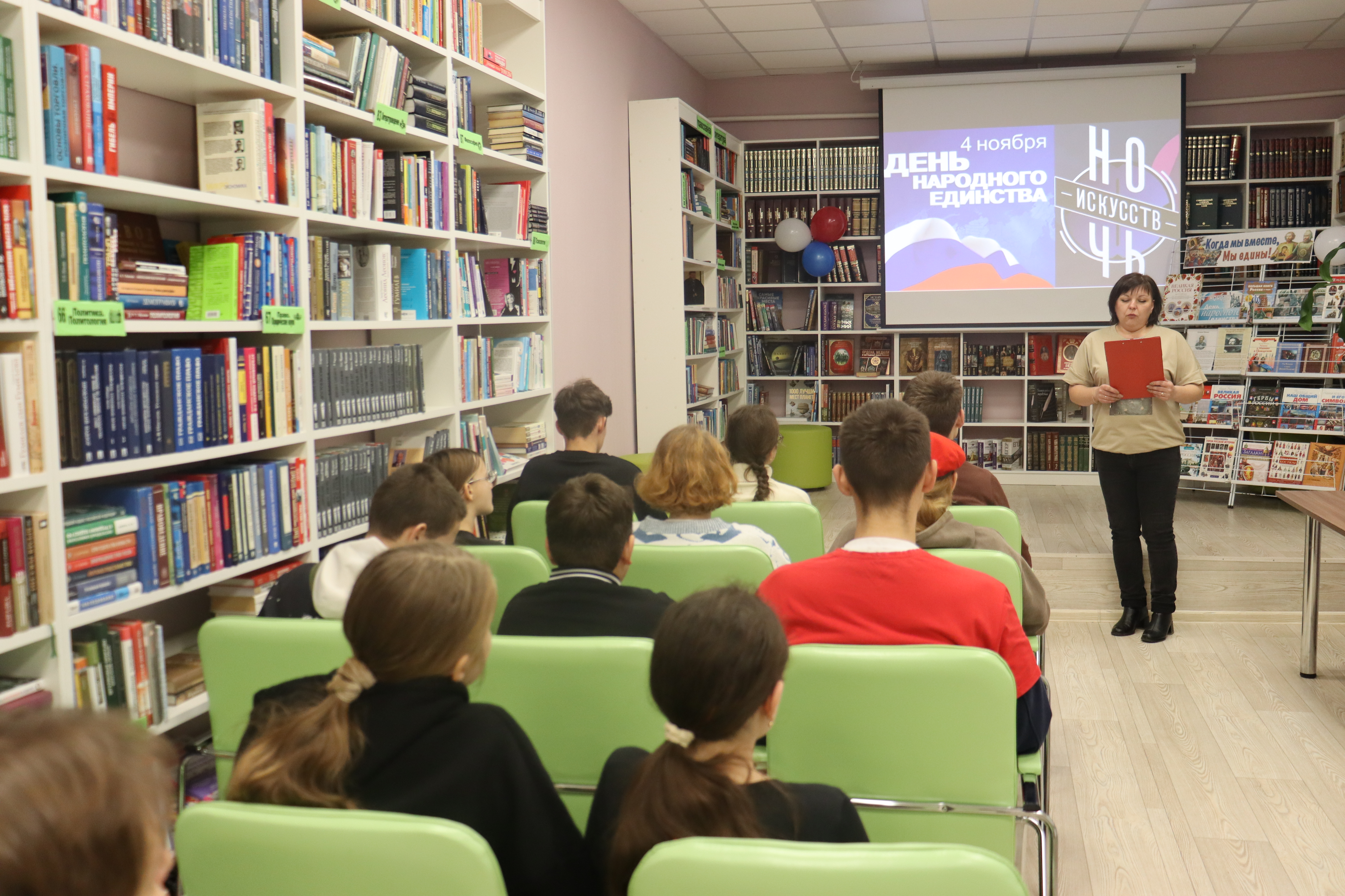 3 ноября центральная районная и детская библиотеки присоединились  к Всероссийской акции Ночь искусств, приуроченной к празднованию Дня народного единства.  Присутствующие совершили экскурс в историю,  в ходе которого библиотекарь рассказала историю  праздника, осветила основные события 1612 года.