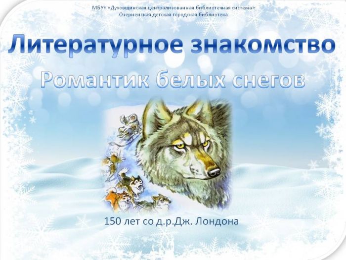 12 января 2026 года исполняется 150 лет со дня рождения — американского писателя и журналиста, военного корреспондента, общественного деятеля, автора приключенческих рассказов и романов Джека  Лондона  (настоящее имя — Джон Гриффит Лондон). К этой дате сотрудники Озерненской детской городской библиотеки подготовили литературное знакомство «Романтик белых следов».