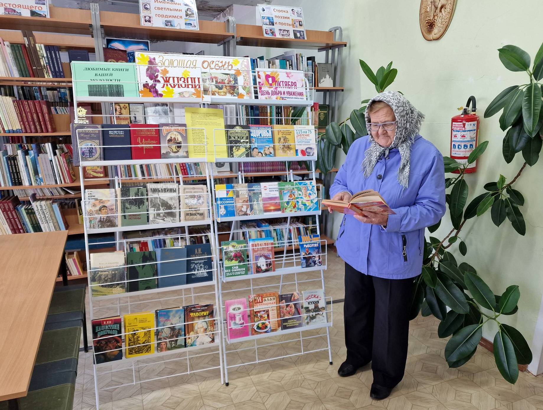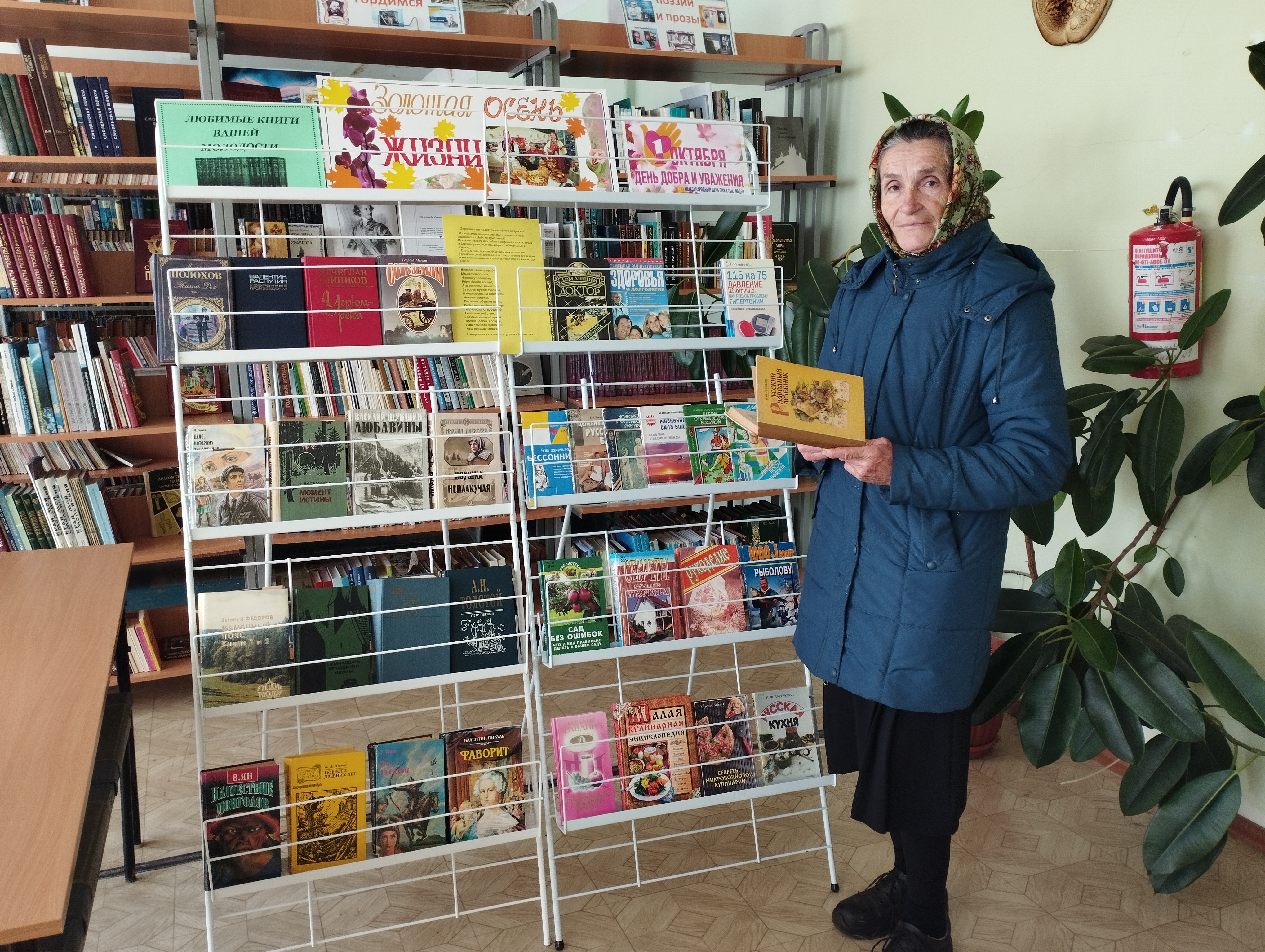 Для этой категории читателей была оформлена тематическая выставка «Золотая осень жизни». На выставке были представлены художественные произведения, которые читатели «золотого возраста» читали в молодости, а также книги, содержащие рецепты и полезные советы для здоровья и долголетия, литература для тех, кто любит мастерить, готовить и занимается огородничеством, садоводством, рукоделием.